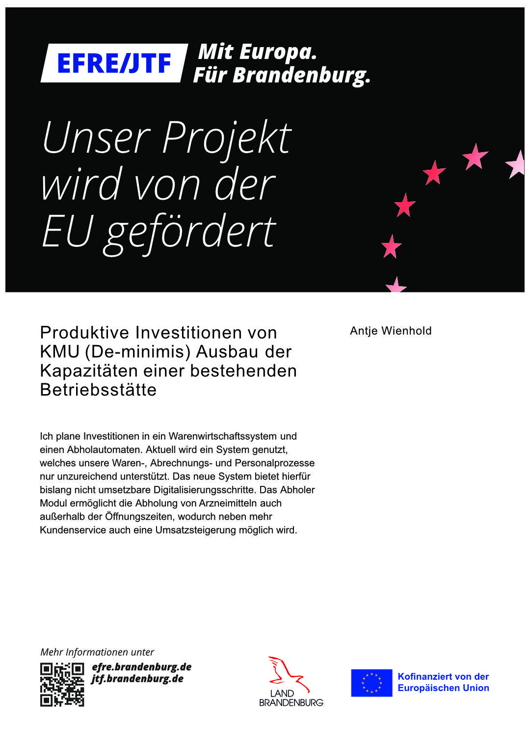 Wir gestalten die Zukunft Die Abholung von Arzneimitteln wird in Zukunft auch außerhalb der Öffnungszeiten über unser KI-gestütztes Computersystem möglich sein. Dafür investieren wir in einen Abholautomaten.